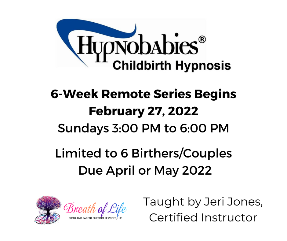 Hypnobabies Childbirth Hypnosis: 6-Week Remote Series Sunday, February 27, 2022 3:00 PM 6:00 PM Breath of Life Birth and Parent Support Services, Tulsa United States (map) Google Calendar ICS